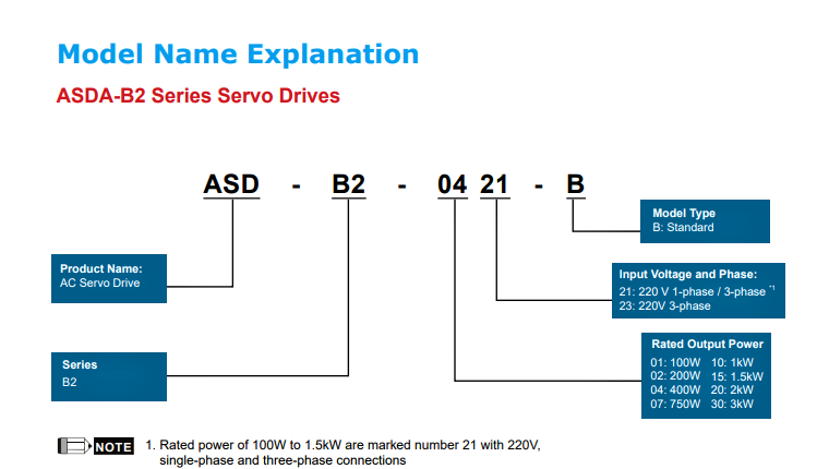 Motor servo dan drive Seri ASDA-B2 berperforma tinggi dan hemat biaya memenuhi: persyaratan untuk aplikasi kontrol mesin tujuan umum dalam otomasi industry pasar dan meningkatkan keunggulan kompetitif sistem servo. Peringkat daya Seri ASDA-B2 berkisar dari 0,1kW hingga 3kW. Fitur unggulan ini seri menekankan fungsi kontrol gerak bawaan untuk aplikasi tujuan umum dan menghemat biaya integrasi mekatronik. ASDA-B2 Delta membuat perakitan pengaturan, pengkabelan, dan pengoperasian nyaman.