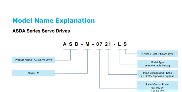 ASDA-M melampaui drive servo biasa. Ini termasuk drive servo 3 sumbu dalam satu bingkai untuk menyediakan kontrol gerak sinkron 3 sumbu dan mendukung pertukaran data waktu nyata di antara 3 sumbu tanpa penundaan waktu. Pengguna dapat melakukan fungsi interpolasi linier / busur / heliks 3-sumbu dengan mudah. Selain itu, ASDA-M memiliki fungsi kontrol gantry baru untuk kontrol sinkron yaitu tepat disesuaikan dengan sistem mekanik kaku murni. Perangkat lunak ASDA-Soft yang ditingkatkan menyediakan fungsi analisis kontur bawaan untuk memperkuat kemampuan diagnosis sistem.